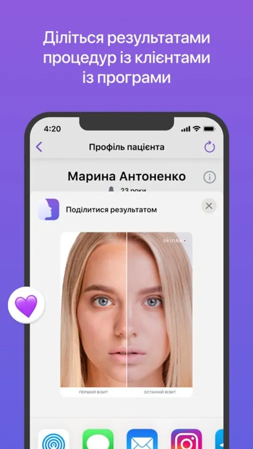 Ведіть облік клієнтів, робіть фотографії До та Після, відстежуйте динаміку поліпшення протягом курсу зі Skinrec!