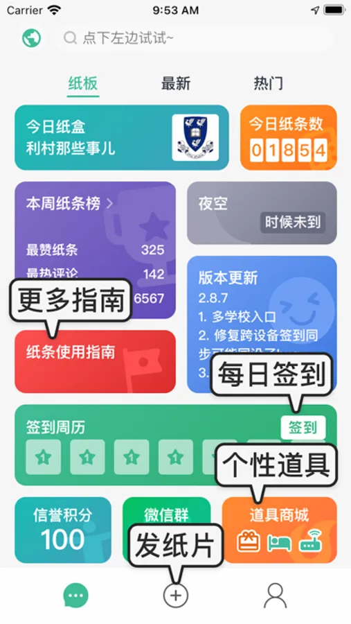 我们在「纸条」发布最初便寄愿这是一个能够解决“学生获取信息渠道杂乱、信息交换困难、信息年级断层等问题”的大学生社交平台。
