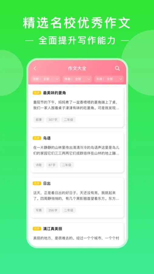 1、新增搜索历史和收藏功能,可收藏作文、古诗
