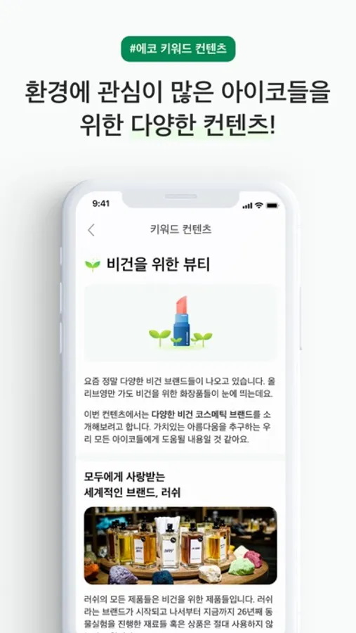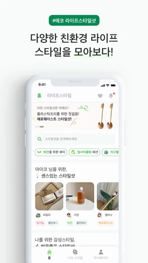 - 다양한 친환경 스타일샷과 제품 추천 기능