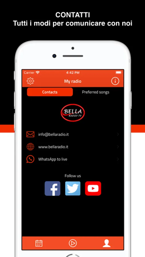Oltre ad ascoltare potrai guardarci, vedere il nostro palinsesto, accedere a tutti i canali telematici e metterti direttamente in contatto con noi!