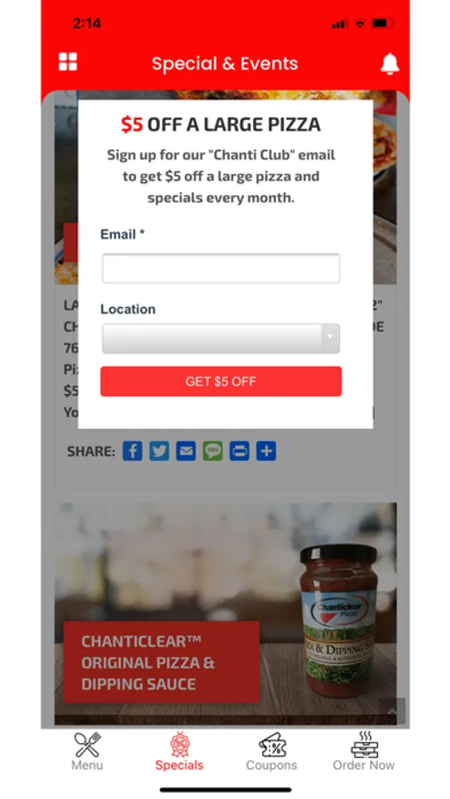 Looking for great pizza deals in the Twin Cities? The Chanticlear Pizza mobile app offers exclusive coupons Chanti fans won't find anywhere else.
