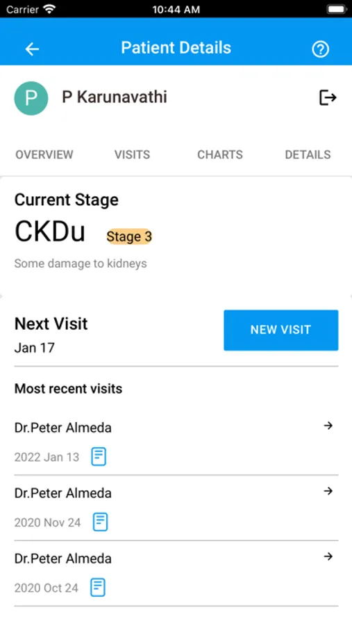 MediCare Plus is a mobile application to record patient's visit data. In that doctors can track their patients’ medical behaviors based on the previous visits details. This is basically developed for tracking kidney patients details. Recently, Sri Lanka encountered increased number of patients with Chronic Kidney Disease of Unknown etiology. The amount of data on treatments against this disease is very less compared to the other common diseases. Hence it is very difficult to develop a relationship between the drugs and the patients condition in this medical area. Hence this mobile assistant is developed to easily collect the required data with the consent of the patient hence later those will be used with AI to build and forecast the relationship between drug dosage and severity and make easy those parameters for doctors systematically.