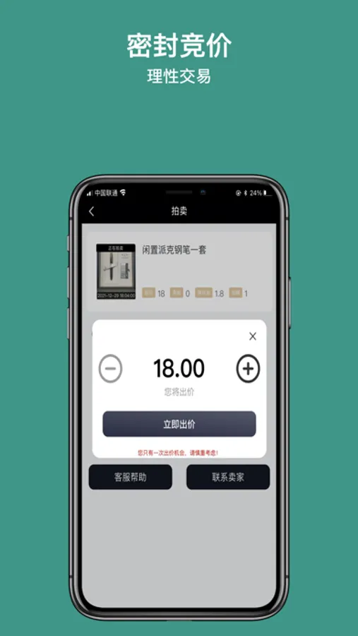 理性竞价:密封第一价格拍卖,鼓励理性出价。