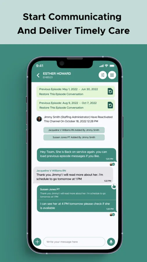 Care Coordinations is HIPAA secured & AI-powered communication app for Home Health & Hospice Care Organizations. Our simple, intuitive, and proprietary interface allows front and backend team members to share secure messages, images, and documents in real-time. We have designed our platform to address all patients' and clinicians' needs and preferences in real-time and communicated to the care team to provide safe, appropriate, and effective care to the patient. In addition, we strive to make care coordination more engaging and automated where clinicians can communicate faster and spend more time with their patients.