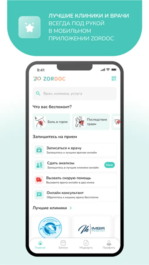 - Онлайн запись на удобное время к врачам и клиникам