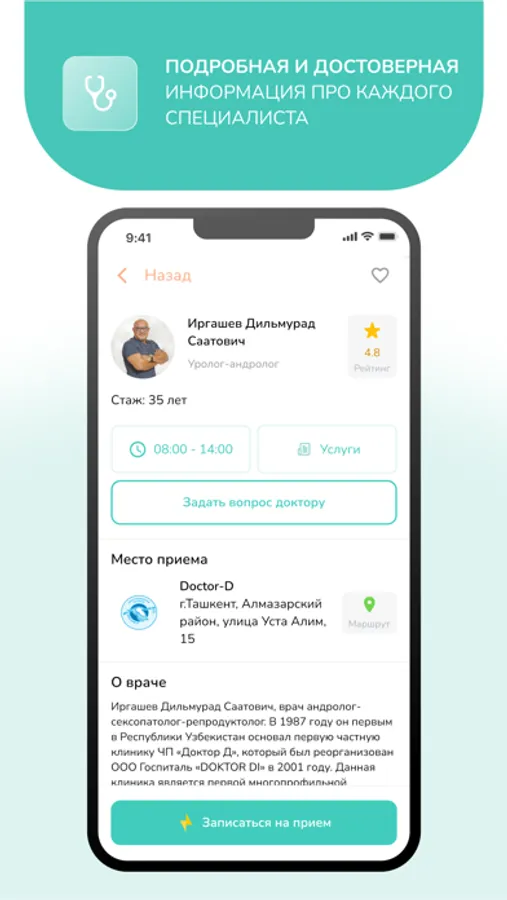 - Подробная и достоверная информация про каждого специалиста