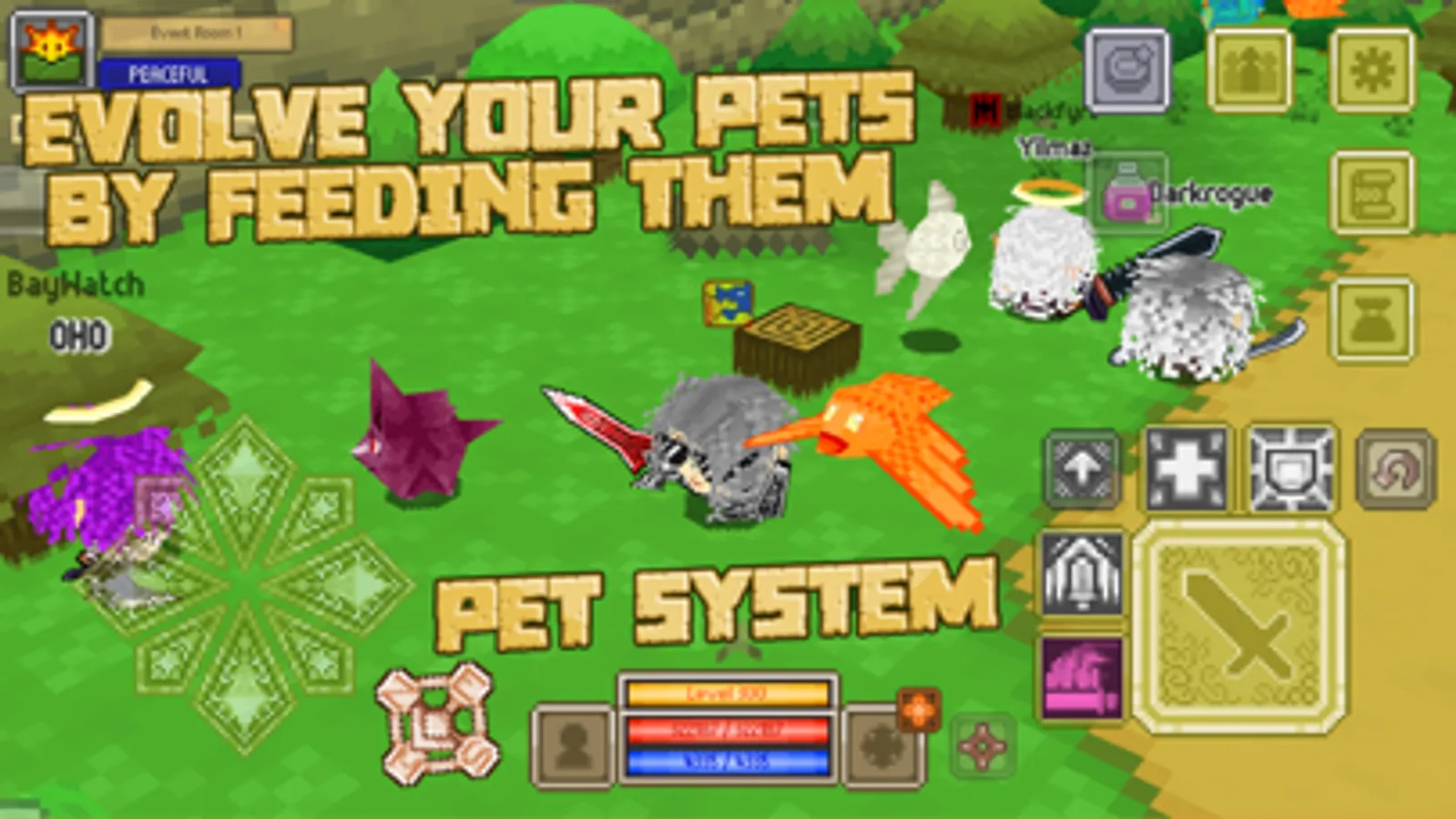 This game has a persistent online world, meaning there are no lobbies or "instances". Local, Global, Party and Whisper chat is available, and there is even a Club (Guild) system in place, which is currently being developed to include more features. Currently you can join or create your own Club and design your own 16x16 Club flag. Trading is possible either by initiating a direct trade with another player for safety, or by just dropping items on the ground for someone else to pick up.