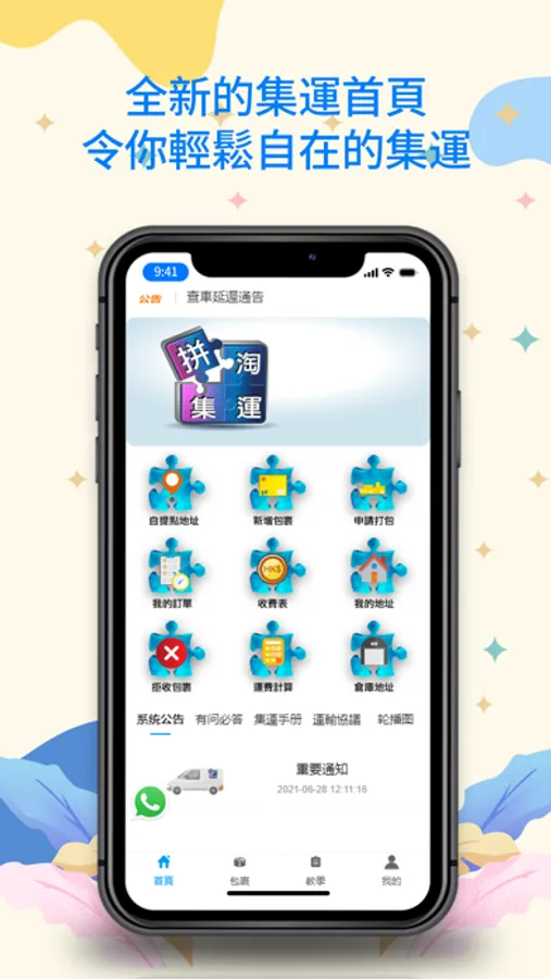 拼淘集運提供國內網購及配套服務,運營總部設於香港,致力中港轉運物流業務,擁有豐富的中港跨境物流經驗,配合科技及創新的物流概念發展成為國內網購的跨境運輸中心,我們將不斷擴大擴展提貨網絡,成為物流的重要集散中心以用家的便利為大前提創造競爭優勢。綜合我們的團隊對行業的豐富經驗及專業知識、