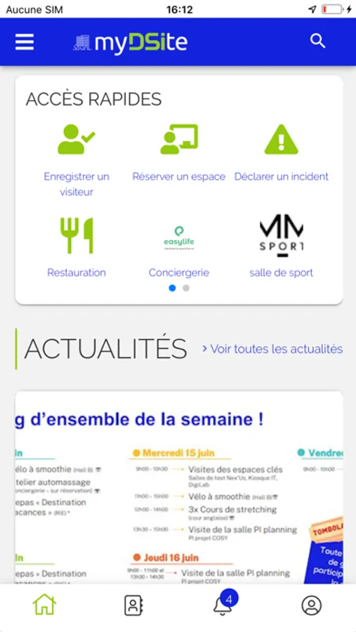 Vous pouvez également utiliser l'application pour réserver des salles, enregistrer un visiteur ou déclarer un incident.