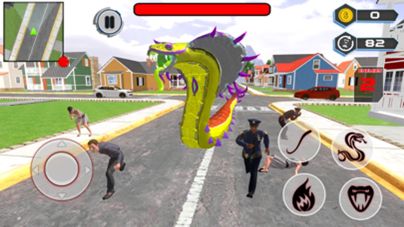 If you like to play animal simulator games, you are welcomed here to the wild anaconda snake attack 3D games. Act like a killer snake and chase citizens, cops, and attack cars. Be the most dangerous and venomous snake. You are a hungry snake, attack, and hunt before you are attacked. Avoid police attacks in the city while hunting citizens. Earn points for each prey in the venom wild snake simulator 3d.
