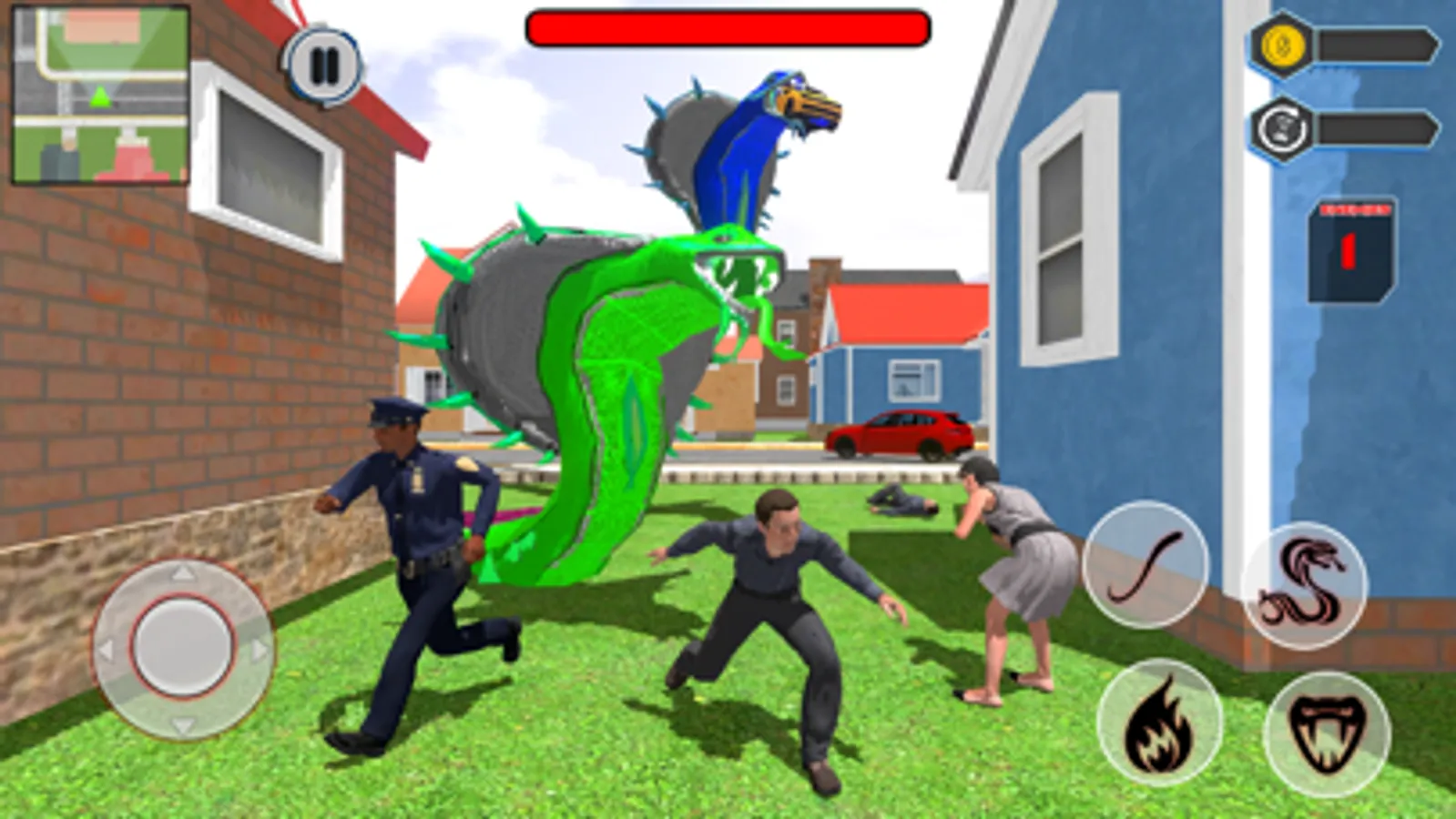 Play this new poisonous cobra snake simulator with favorite skin of snake games. Attack crazy citizens in the big city with your giant carnivorous poisonous snake. Live the life of giant snake games, hunt and eat citizens as much as you can. Play thrilling anaconda snake attack missions of this reptile hunting simulator game. Follow the map, control, and move giant anaconda snake to attack citizens with fire powers, venom and poisonous fang. Show powerful and venomous anaconda snake hunting skills to slay your prey in the city streets.