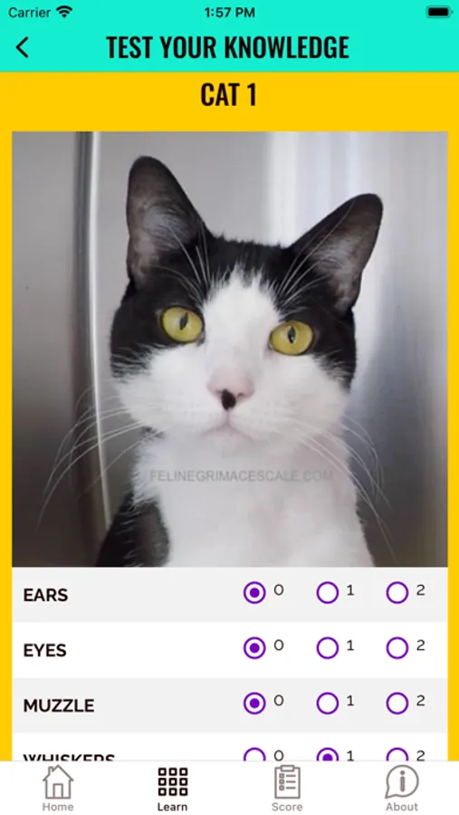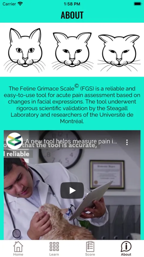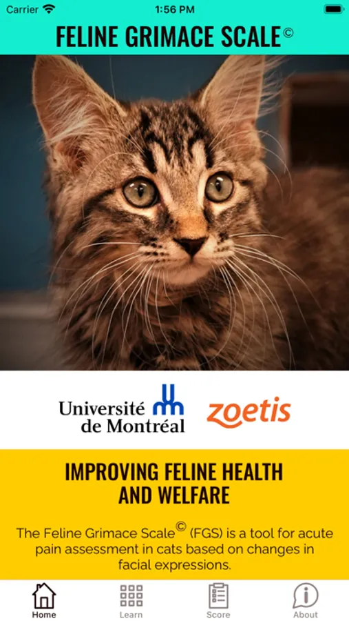 The Feline Grimace Scale App teaches users about this tool and facilitates real-time pain scoring in cats. It has several drawings and images to facilitate learning, including a practice session. This App can be used by any person.