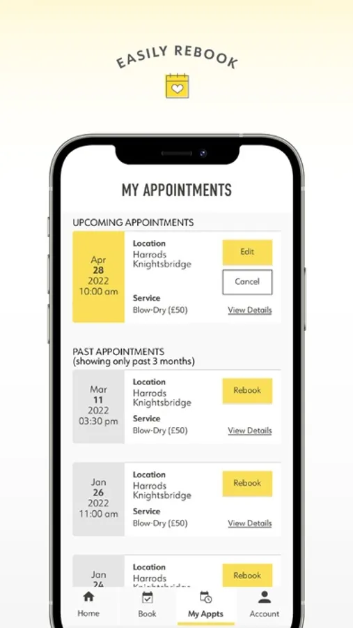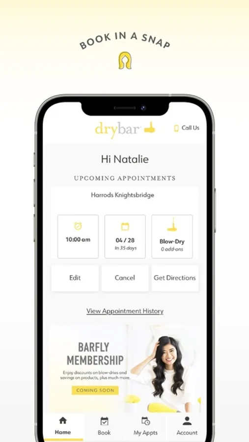 Easily book a blow-dry appointment for you and all your friends. View, edit, or cancel your upcoming appointments on your personal home screen and seamlessly rebook your favourite service & location with just a few taps.