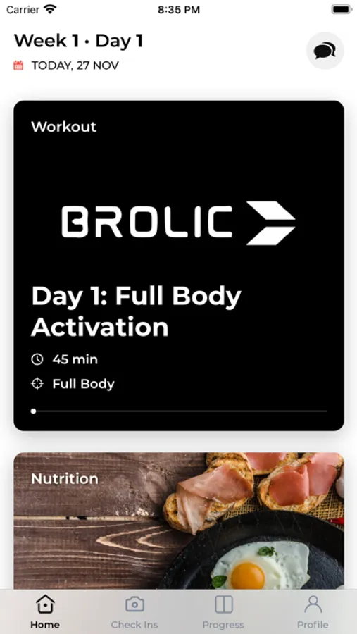 With the BROLIC app you can track your progress, follow daily exercise & recovery activities, record meals and calorie intake, chat with your personal trainer, update your weekly check-ins, and track your daily activity with your wearable devices. Everything that contributes to your fitness journey gets captured in your BROLIC app.