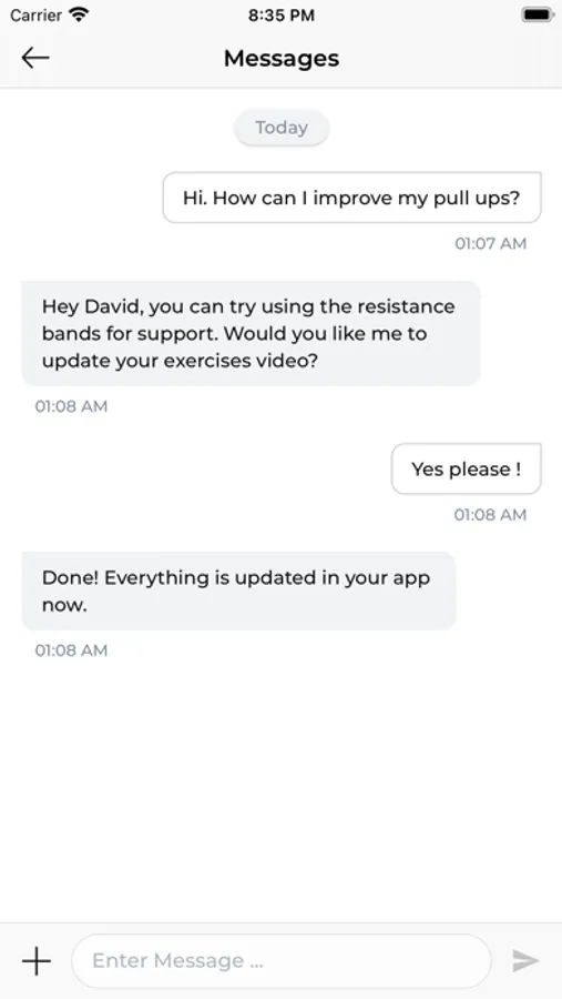 * In-App Chat - Chat with your trainer to get real-time answers on any questions or concerns you have with your fitness programs.