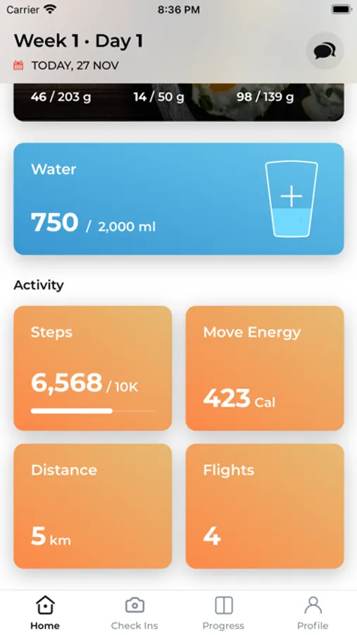 The app integrates with Apple Health to show your daily activity - distance, steps, active energy, and flights to help you better achieve your goals.