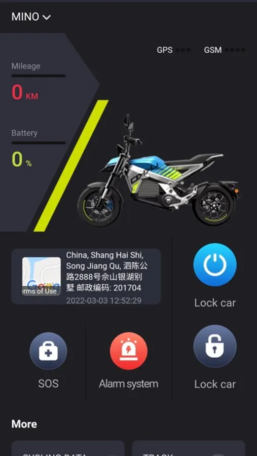 Vehicle condition: remaining power, remaining mileage, location, historical track and riding distance statistic data.