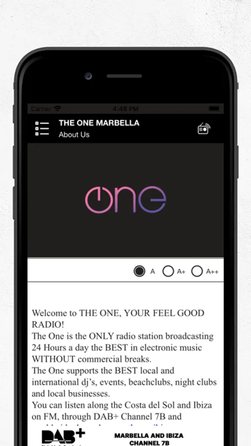 You can listen along the Costa del Sol and Ibiza on FM, through DAB+ Channel 7B and worldwide through www.theoneibiza.com