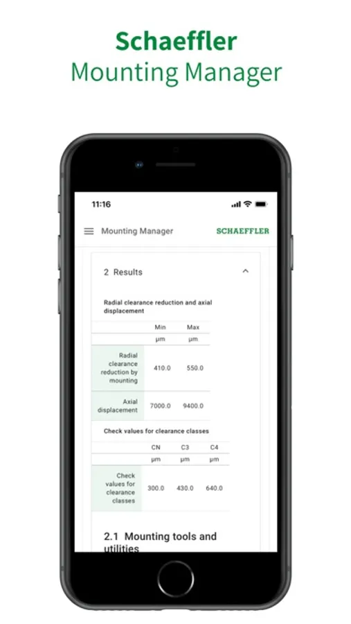 The Schaeffler Mounting Manager comfortably assists in selecting the right bearing installation and offers following possibilities: shows various mechanical and hydraulic procedures, calculates required installation parameters, gives useful installation hints, creates a list of required accessories and tools