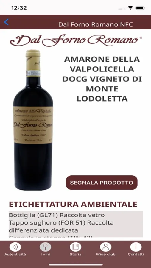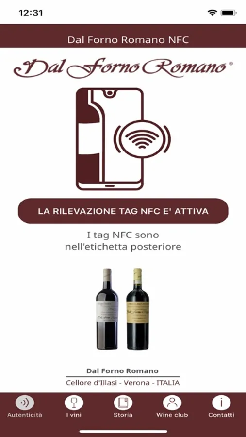La app Dal Forno Romano NFC ti consente di verificare l'autenticità dei vini prodotti da Dal forno romano SPA. Il TAG Autentico è posizionato al di sotto della retro etichetta o sotto forma di bollino ben visibile nella bottiglia.