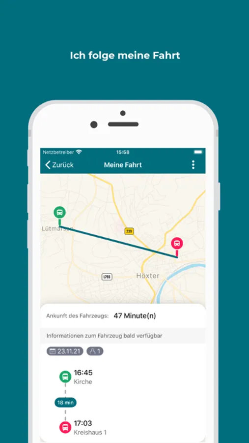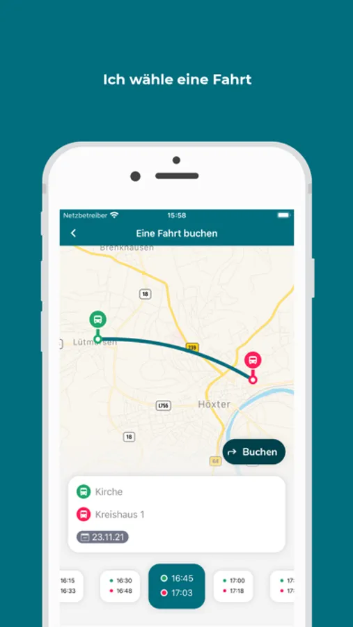 3. Fahrt buchen (Haltepunkt und Abfahrtszeit werden angezeigt)