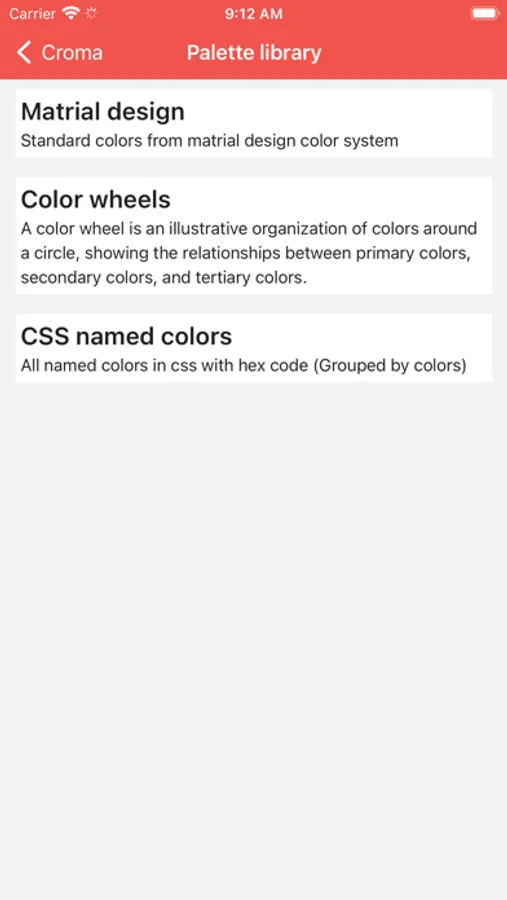 Sharing is important, so we made it easier than ever to share color palettes. The recipient gets a link to quickly preview the colors in Croma. Even if he doesn't have the app.