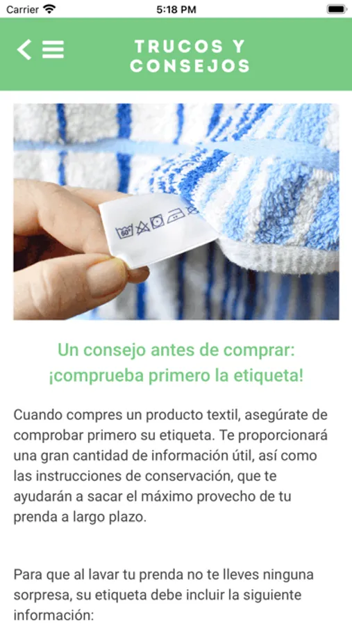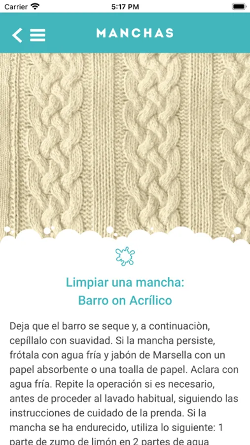 MI ETIQUETA también llega al rescate cuando se han de tratar manchas (incluso las más complicadas): simplemente, selecciona el origen de la mancha, la fibra textil y podrás encontrar la mejor solución para tratarla.