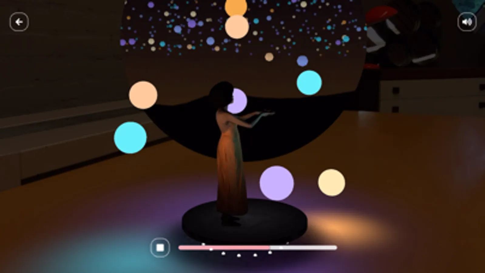 All Kinds of Limbo is a communal XR experience that can be encountered as VR, AR or on a computer. Singer Nubiya Brandon, musician Raffy Bushman and the NuShape Orchestra take you through the genres of reggae, grime, classical and calypso in a musical journey inspired by the influence of Caribbean culture on the UK's music scene.