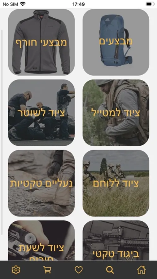 בעוד מספר קליקים תוכלו לרכוש את כל מוצרי המותגים המובילים והציוד הדרוש לחייל , לשוטר ולמטייל.
