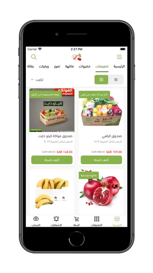 تطبيق كرز لبيع الفواكه والخضروات الطازجة وتوصيلها الي منزلك بشكل اسرع
