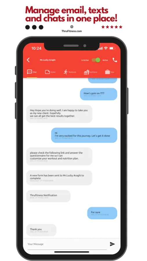 ThruFitness is a feature-rich, mobile application and web-based a customer management platform designed specifically for sport trainers. We do offer different features such as membership management, Call, Email & SMS Integration, Launch online surveys, quizzes & questionnaires, Appointments & reminders, Workout and Nutrition guidance, Invoice & billing and etc. With direct integrations with other industry-leading solutions, ThruFitness merges all of the relevant services into a single, easy to use platform. Our CRM is able to offer access from anywhere and any device which help trainers to take control of their business.