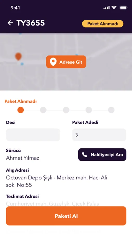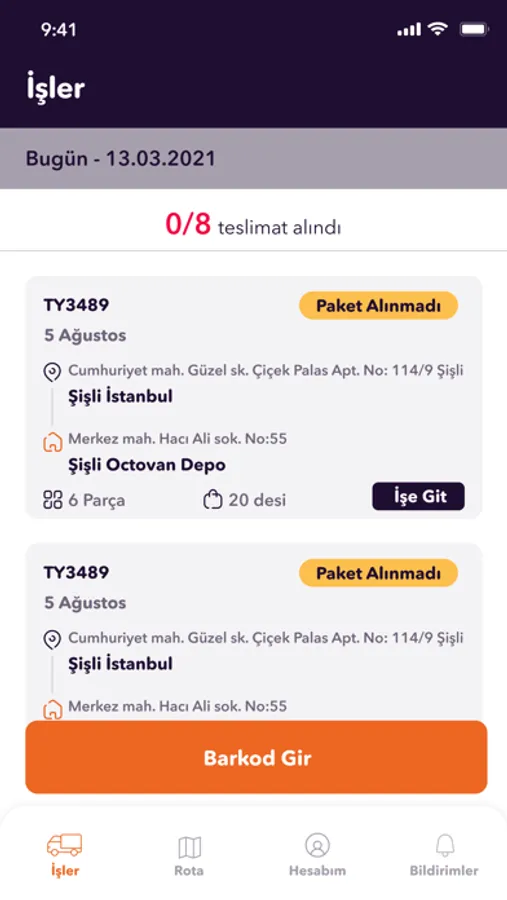 Bu uygulamada sürücüler ve depo kullanıcıları onlara atanan taşımaları görebilir ve iş detaylarına erişebilir.