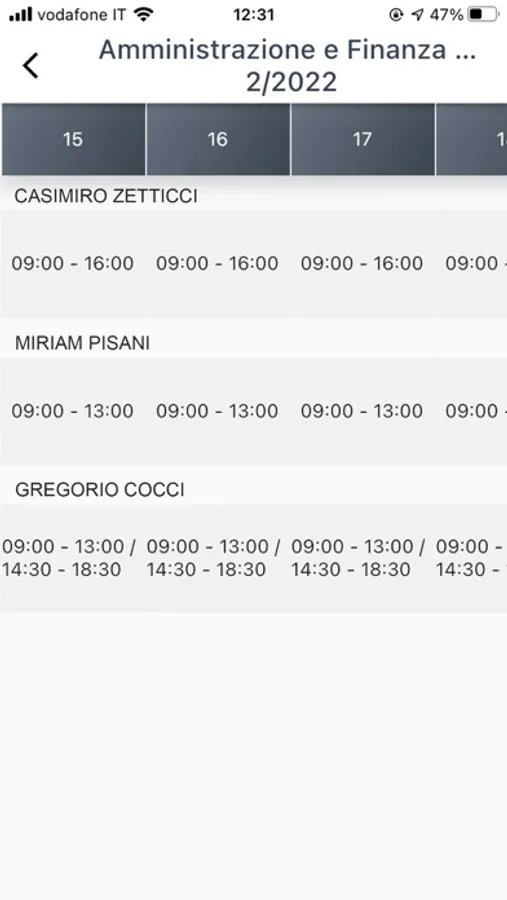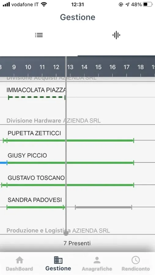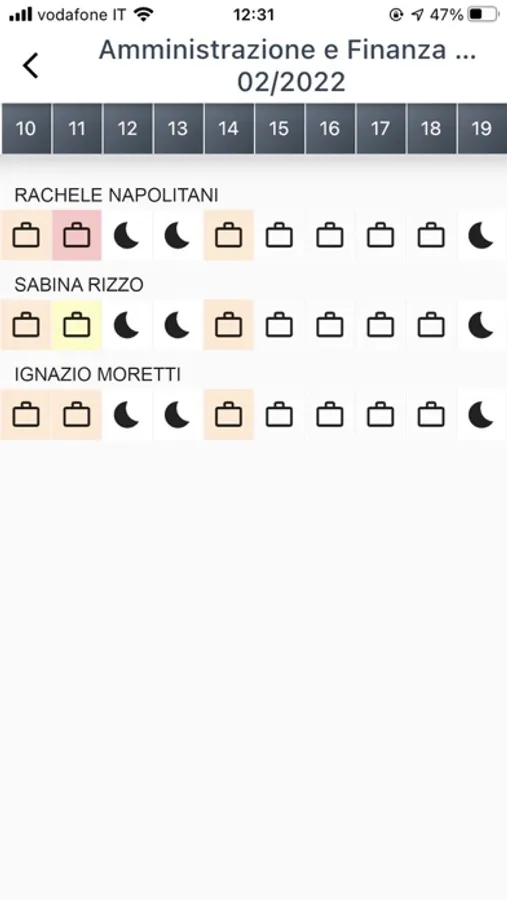 L'utilizzatore può consultare il proprio programma di presenze / lavoro per la settimana, inoltre, se manager, può verificare in tempo reale la regolarità delle presenze, la mancanza di alcune di esse, i presenti e assenti, e può apportare modifiche al programma di lavoro (e conseguentemente al programma delle presenze previste) in funzione di esigenze sopravvenute.