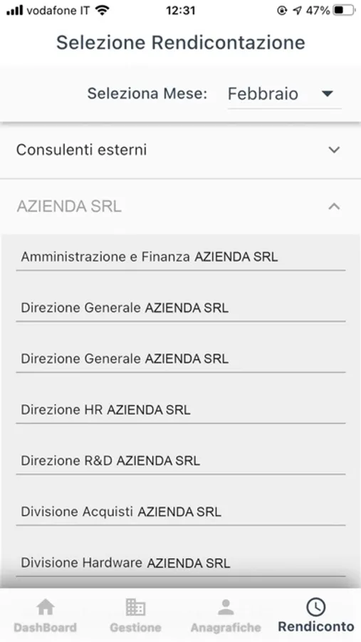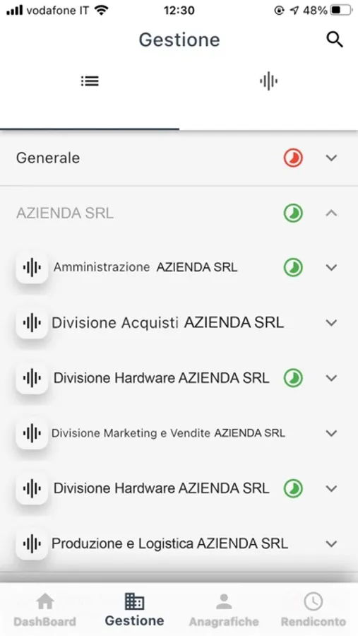 Tutte le facoltà visualizzazione ed editazione dei dati sono concesse in funzione della posizione gerarchica dell'utente che ha effettuato l'accesso nell'organigramma aziendale.