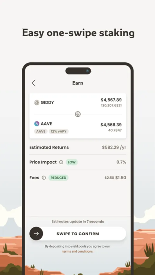Until now, participating in DeFi has been extremely technical and difficult for most people. Giddy takes care of all that complexity and delivers an easy-to-use experience so that anyone can get into the game.