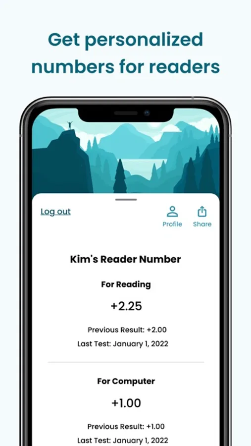 For a one-time fee, get personalized results based on your age and usage preferences (smartphone, reading, computer). Help friends and family find their reader numbers by using Guest mode.