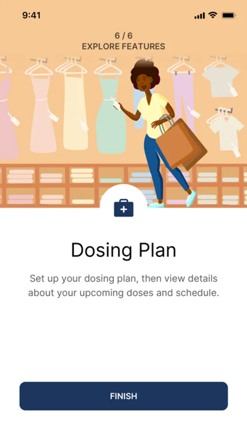 Plan feature to stay on top of your treatment by setting up your dosing plan, scheduling dosing reminders and tracking when to take your medication.