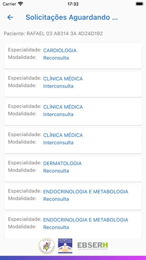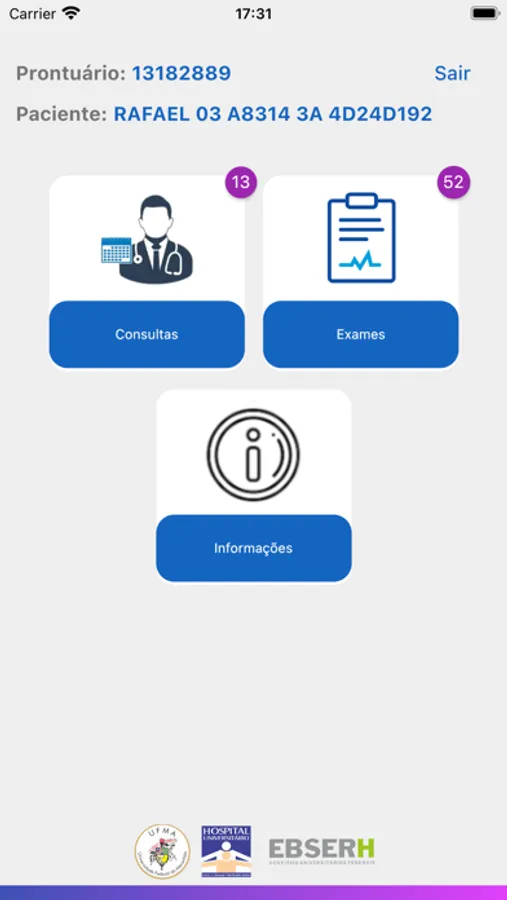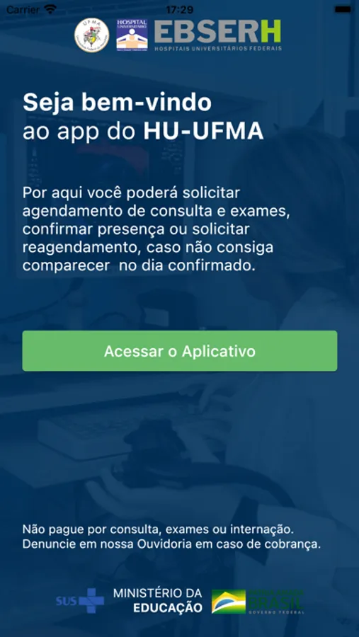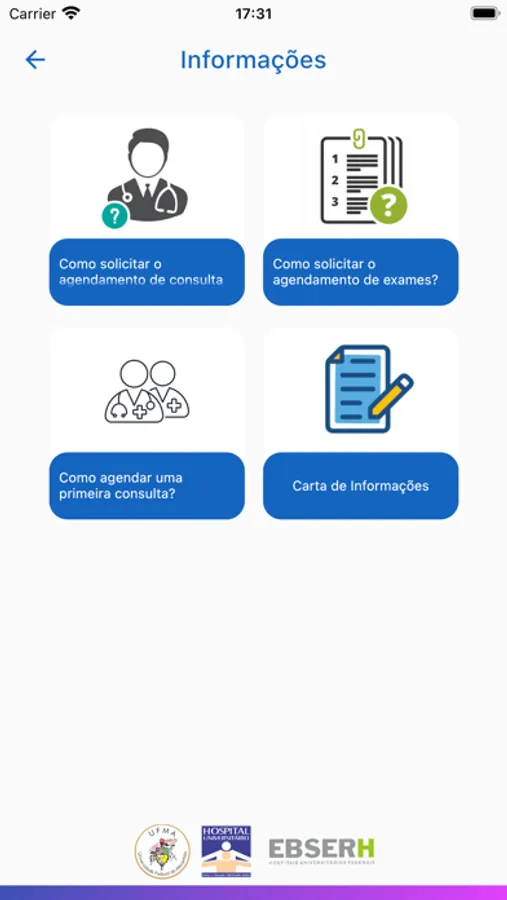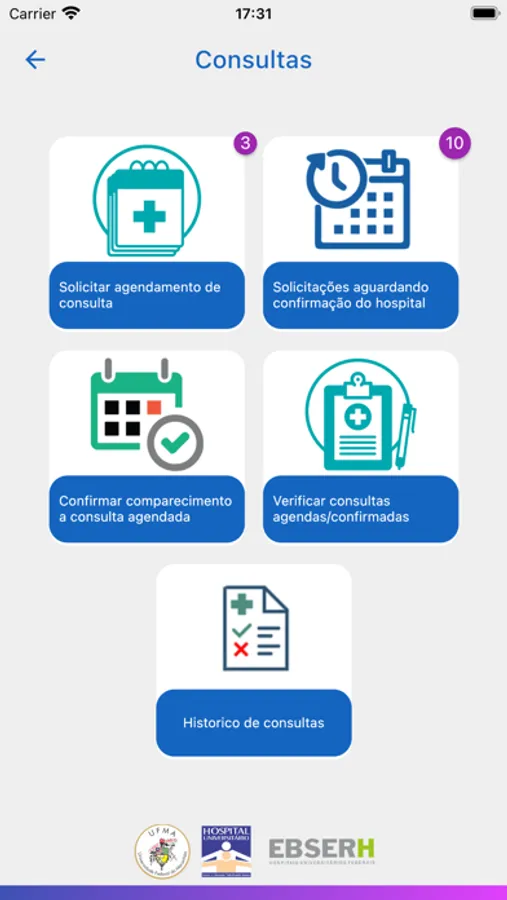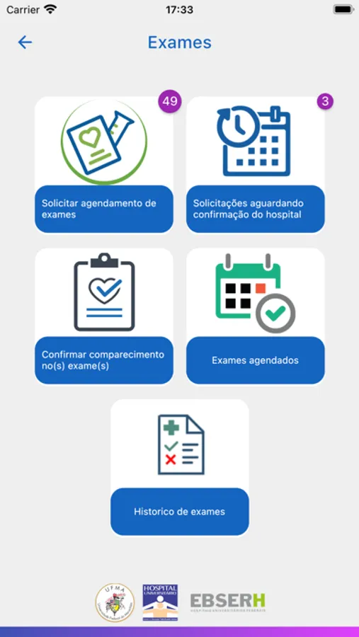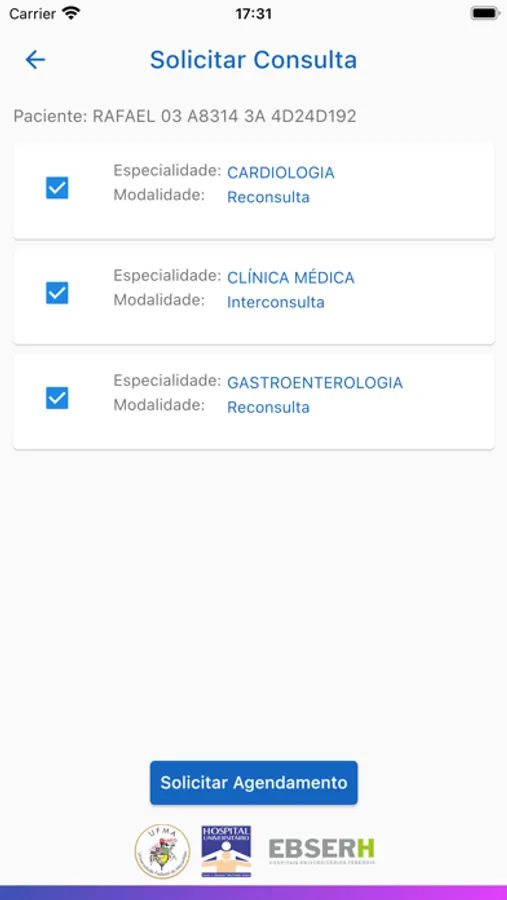 Aplicativo do Hospital Universitário do Maranhao para solicitar agendamento de consultas e exames