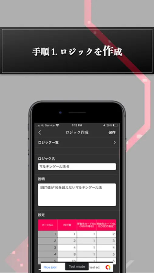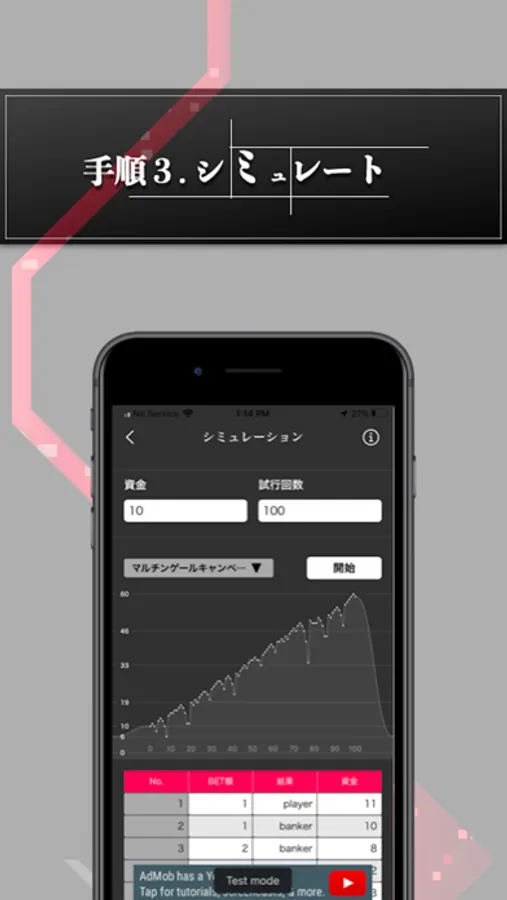 このアプリでは、自分でロジックやキャンペーンを作成してシミュレーションすることができます。