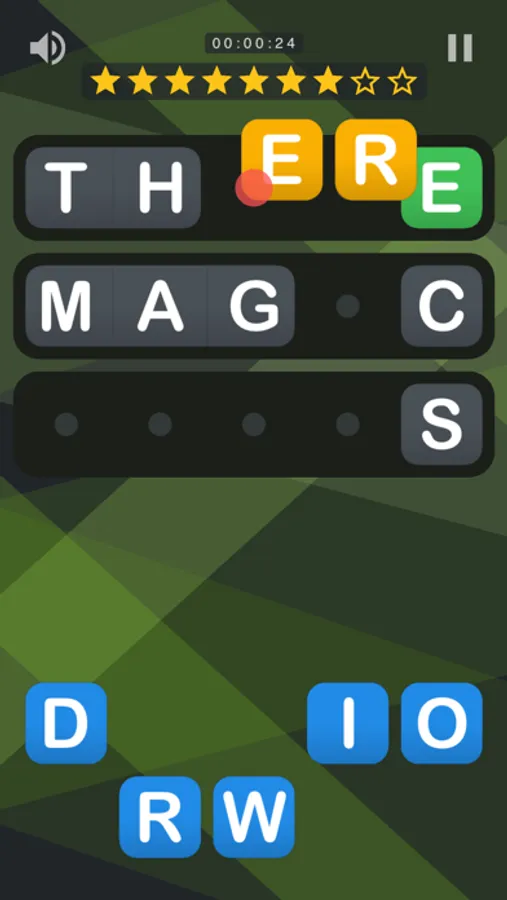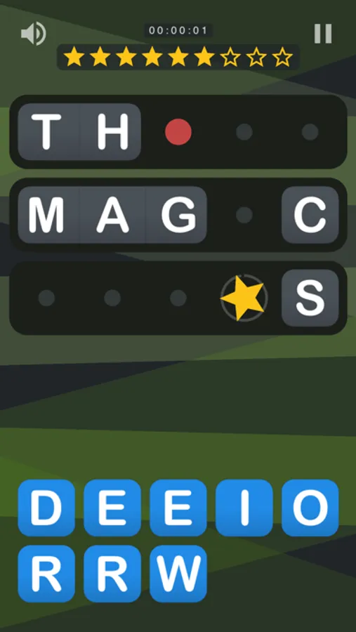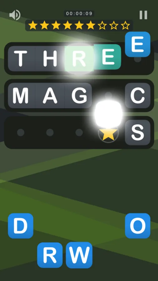 A word game for people who love word games. Much more than a word jumble, in each round of Three Magic Words you are challenged to complete three five-letter words with the available tiles in a test of logic and language skills. Solve all three words to advance to the next round. Get the right letter on a star before time runs out to collect it — increasing the difficulty of the next round. Collect nine stars to win!