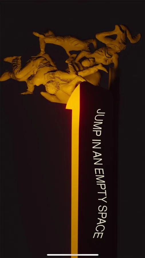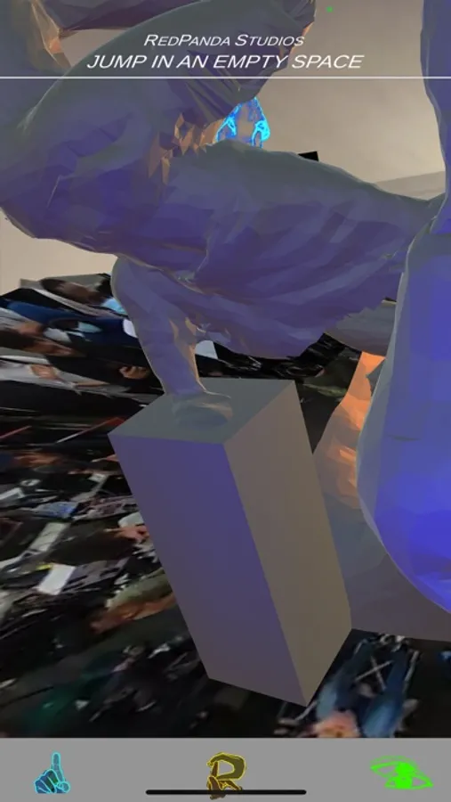 The Jump In An Empty Space application is made for our collaborative art project with hip hop and break dancers. We find the poses that these performers create with their bodys very interesting. They have an unnatural look to them and go against gravity making them seem impossible. We see this as a metaphor for the reversal of the social dynamic. At the same time their dancing practice is very similar to what artists do, to create something abstract, perfect, believable but yet seemingly impossible to reach. We first present our 3D sculptures with 4 dancers in a hip hop battle environment. Users find themselves in the middle of the battle next to the sculptures when they scan the target image.