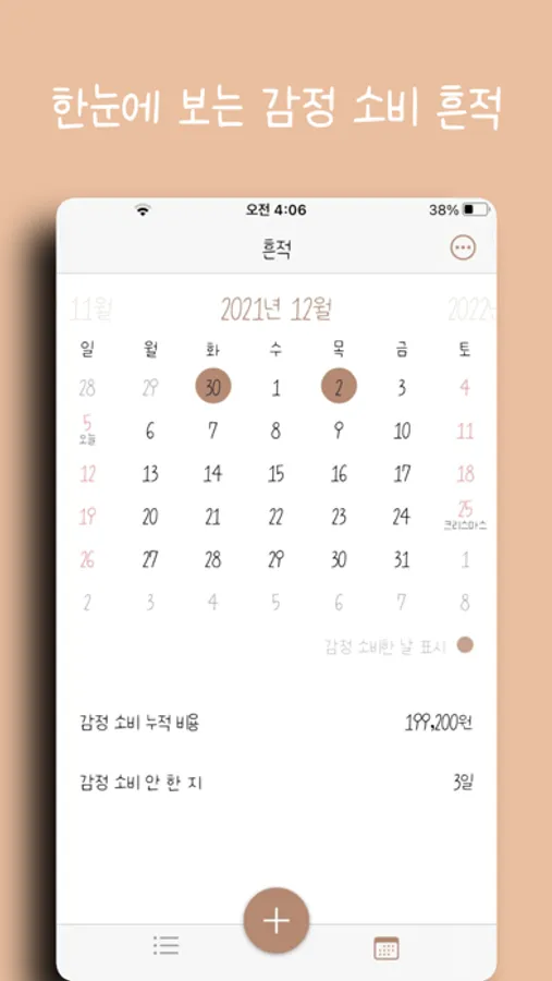 누적 비용, 감정 소비한 날이 얼마나 지났는지 텍스트로 확인할 수 있죠.