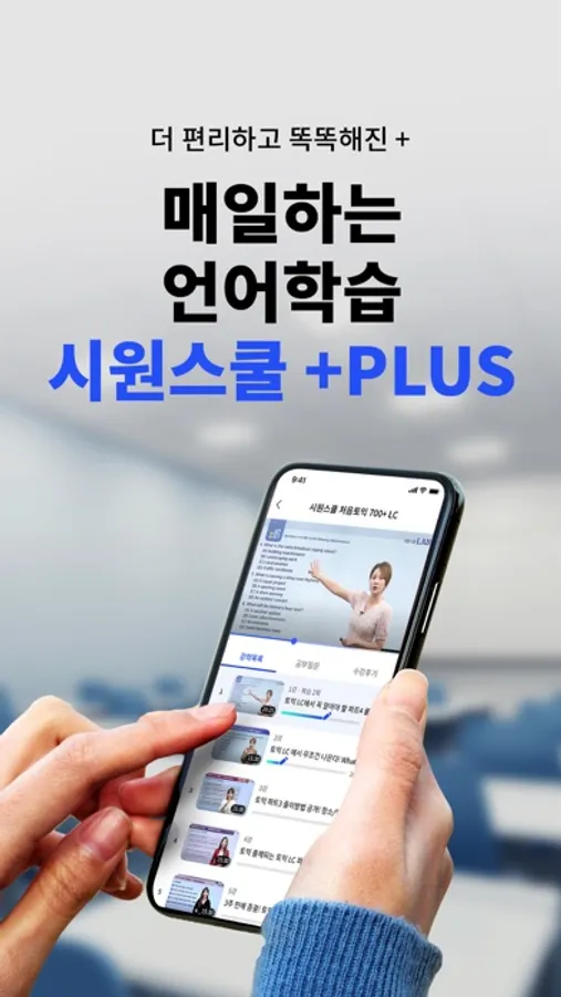 시원스쿨의 강의를 언제 어디서나 들을 수 있게 모바일 강의 수강에 최적화된 강의실 앱이 강의를 듣지 않을 때에도 학습 관리까지 하나로 하는 ‘시원스쿨 플러스’로 재탄생했습니다.