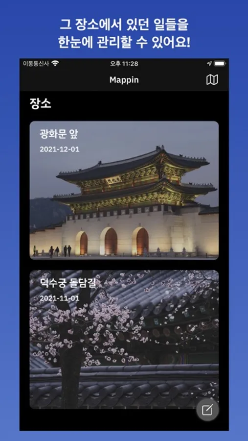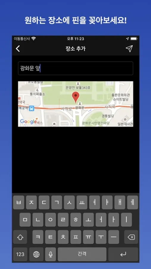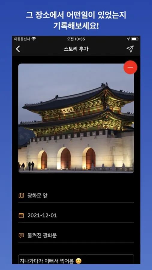 위치 접근을 허용하면 사용자의 현재 위치에 바로 핀을 추가하고 스토리를 작성할 수 있어요.