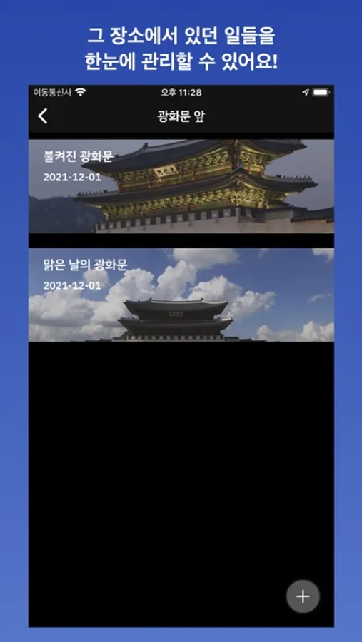 초기 화면에서는 사용자가 작성한 기록들을 한눈에 확인하고 관리할 수 있어요.