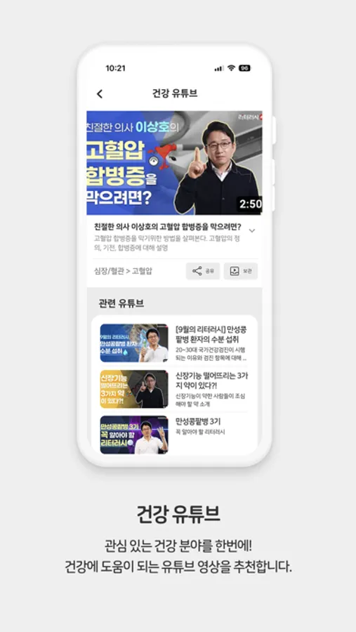 내가 찾아본 영상에서 검색한 의료 정보, 검증된 영상인가요? 나의 건강데이터에 따라 업데이트되는 의료인이 검증한 건강 영상을 확인해 보세요.
