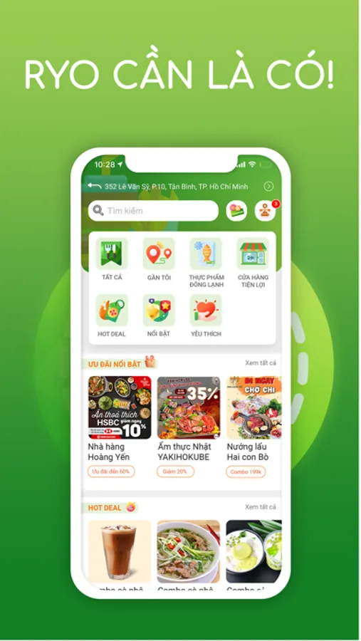 RYO - Đồ ăn: Hãy đặt các món mà bạn yêu thích, giải tỏa cơn đói ngay tại nhà vì RYO sẽ giao đồ ăn tận nơi và vố số món ăn hấp dẫn đến từ các nhà hàng.