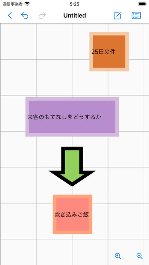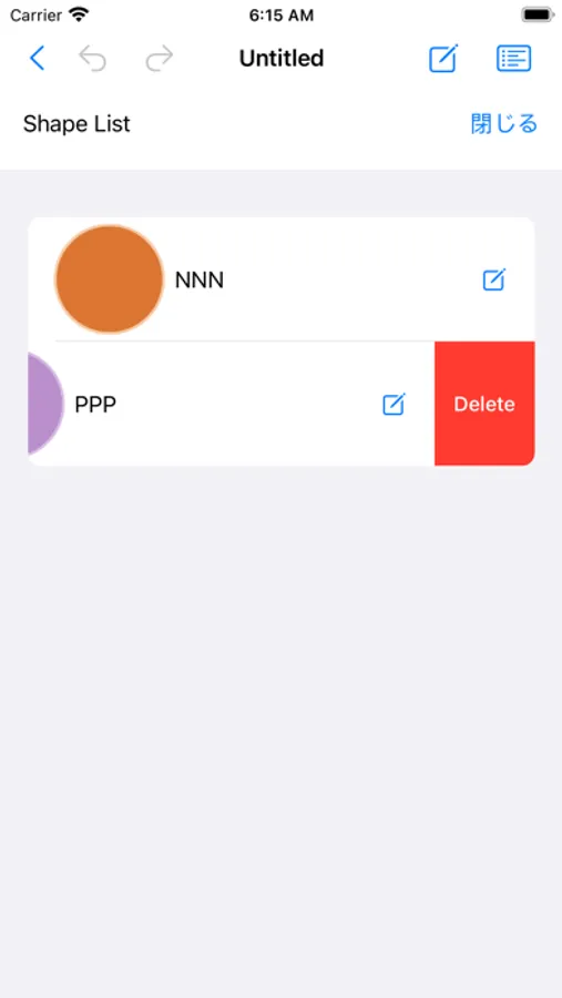 アイデアをまとめるために、図形+メモを使用してメモするアプリです。右上から二番目の編集ボタンを押して設定することで、図形を生成できます。図形にはメモを記入することができます。ドキュメント生成時に2つ円の図形が生成されるようにしています。それを触ってみてください。