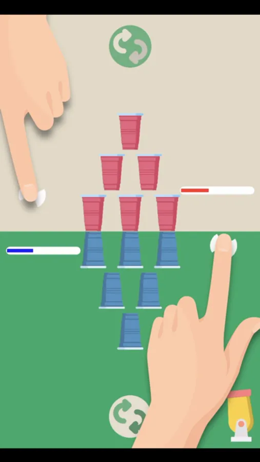 Pong Machine is a beer pong simulation game. Two players play simultaneously and the goal is to hit all the cups of their own color as quickly as possible.